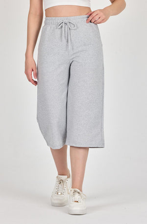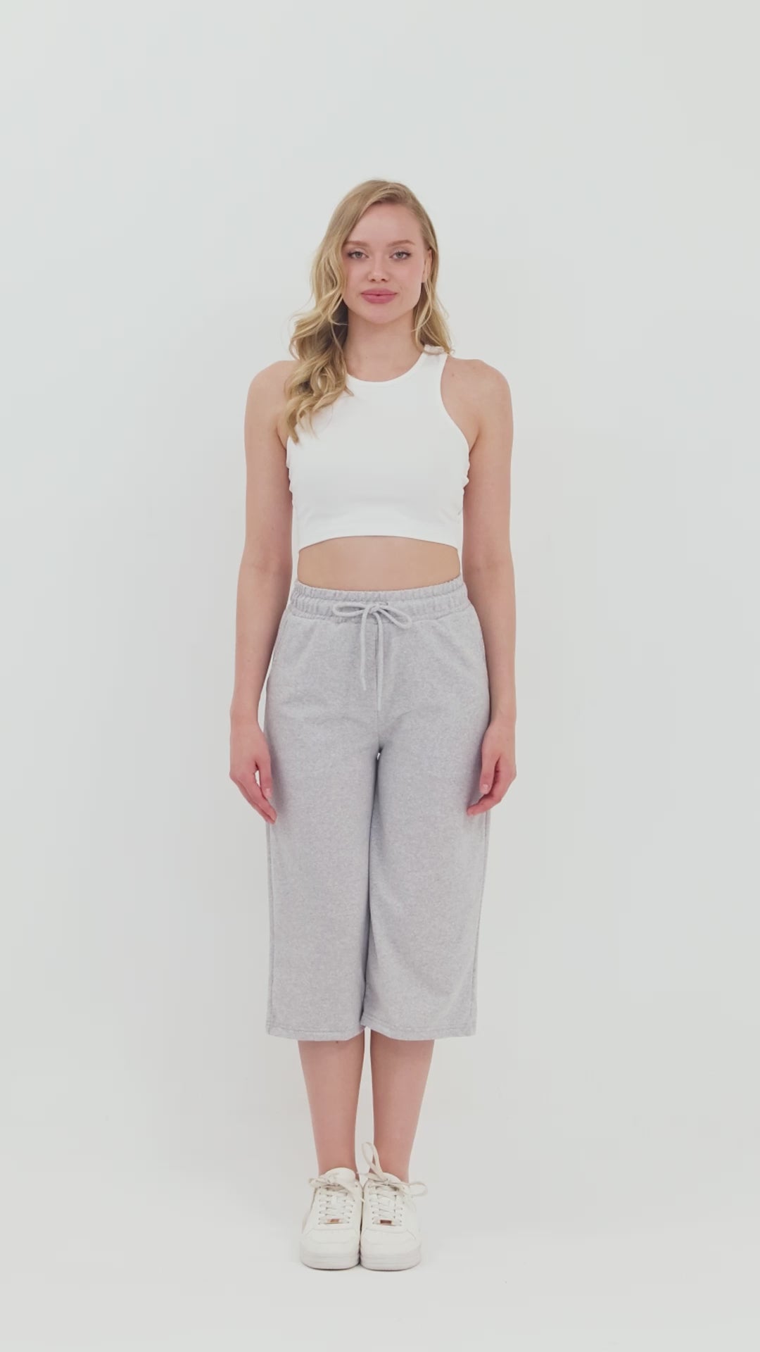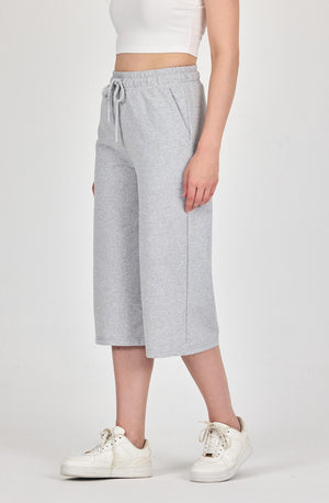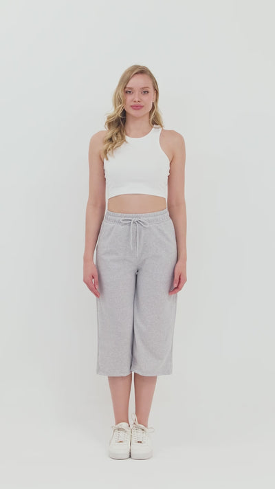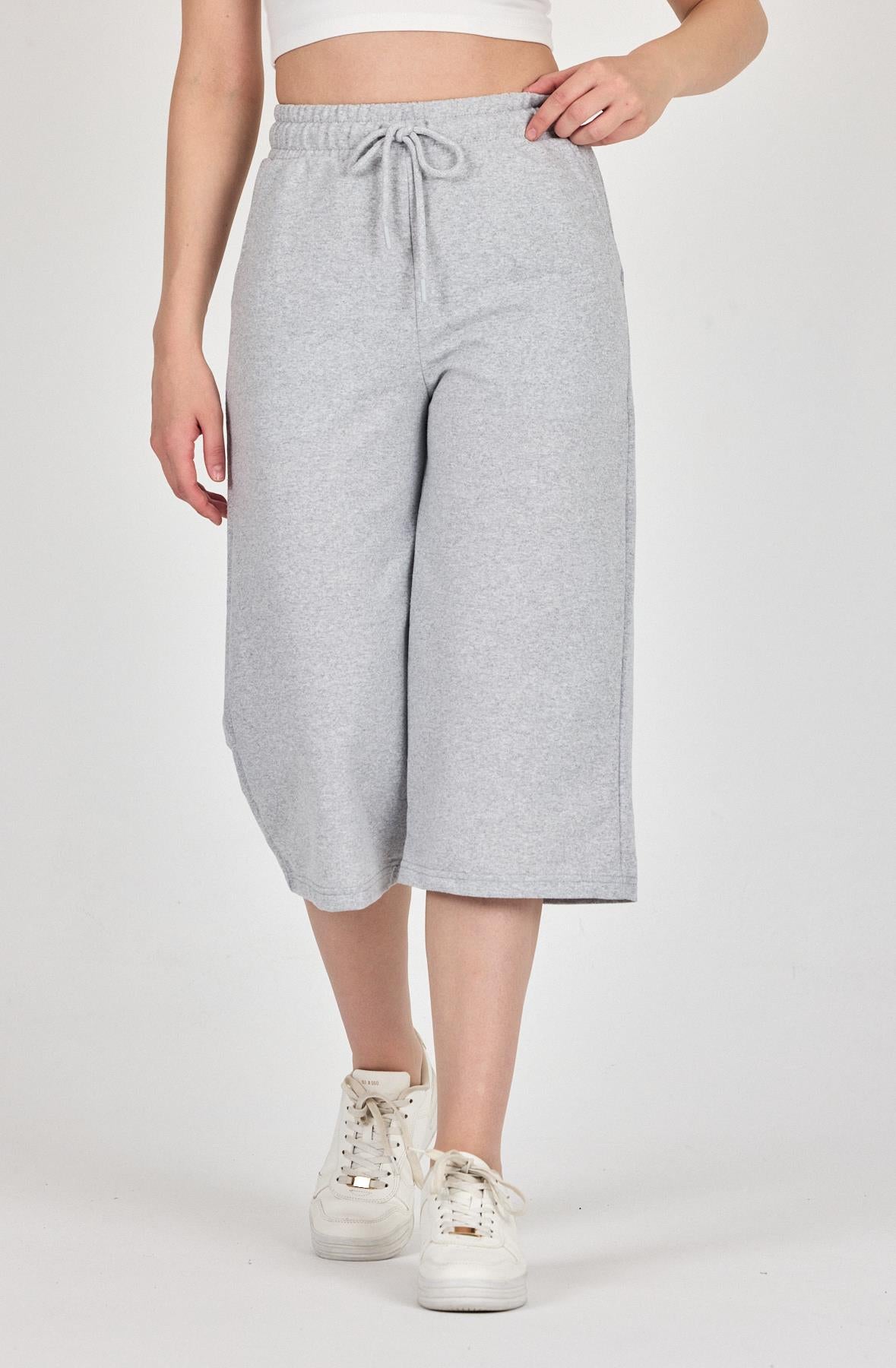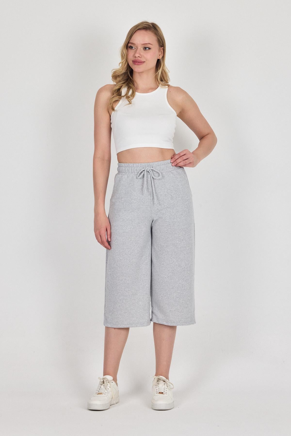 Yüksek Bel Cepli Rahat Kesim Mevsimlik Kadın Diz Altı Bermuda Gri Kapri Şort