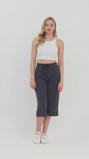 Yüksek Bel Cepli Rahat Kesim Mevsimlik Kadın Diz Altı Bermuda Füme Kapri Şort